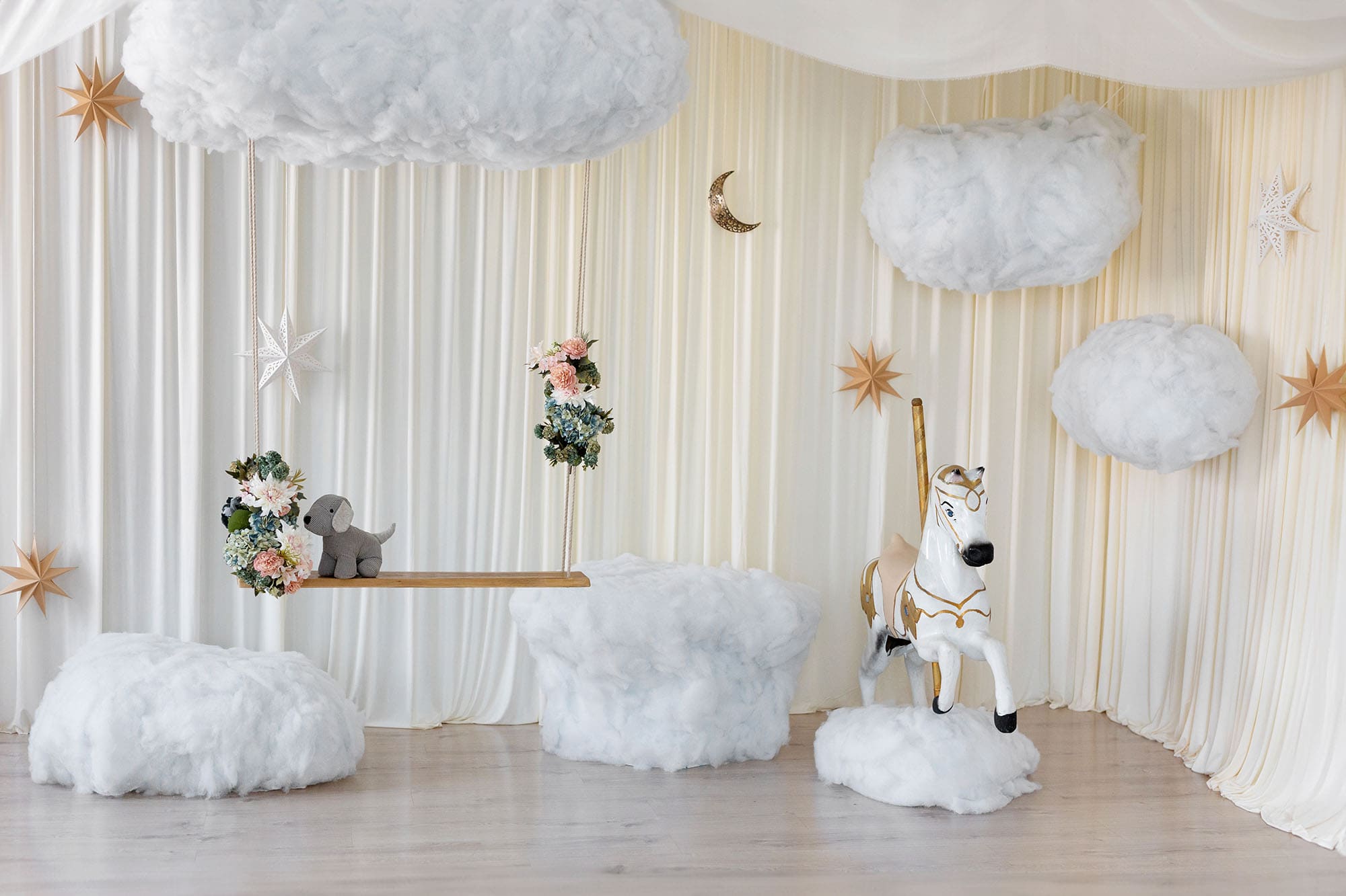 - 60 perc tiszta bérlési idő az egész műteremben (70 négyzetméter, 2 egybenyitott szoba) Tehát 2 különböző hangulatú helyiséget is használhattok egyszerre, egy világos, romantikus teret, meg egy sötétebb, fineart környezetet. Plusz nem csak enteriőr, de papírhátterek is vannak.